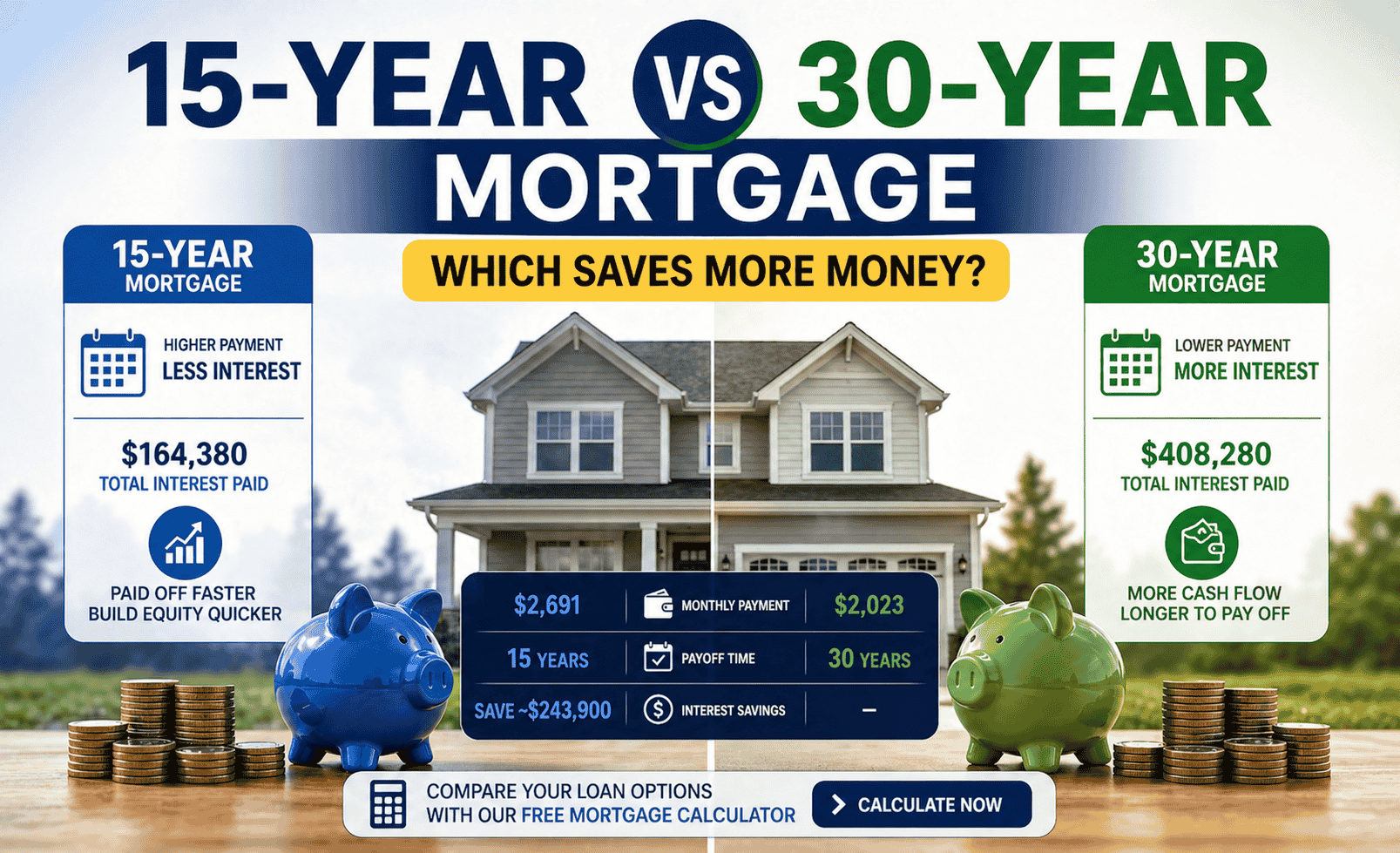 If you’re getting a mortgage, the 15-year vs 30-year decision will likely be one of the most financially significant choices you make. Choose the 30-year and your monthly payment is lower — but you’ll pay interest for twice as long. Choose the 15-year and you’ll save a staggering amount in interest — but your monthly payment will be noticeably higher every single month for the next decade and a half.